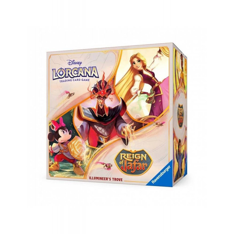 Set premium para jugadores y coleccionistas de Disney Lorcana TCG. Incluye caja ilustrada de almacenamiento con 7 divisores para organizar cartas por tinta. Contiene 8 sobres de refuerzo, 6 dados con efecto arena y 1 contador giratorio de puntos de leyenda. Ideal para mantener la colección segura y llevar el control durante las partidas.