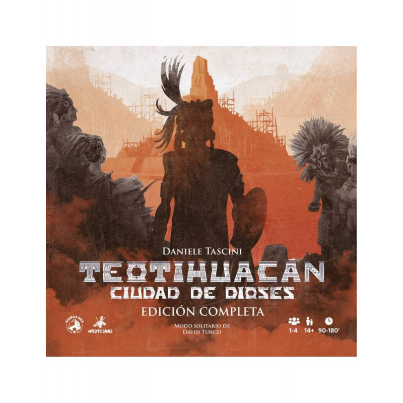 En Teotihuacán: Ciudad de Dioses, cada jugador controla un grupo de dados de trabajador, cuya fuerza aumenta en cada movimiento. En tu turno, mueves un trabajador alrededor de un tablero modular, eligiendo siempre una de las dos áreas del tablero de acción en el que acabas: una ofrece una acción (y una mejora de trabajador) y la otra otorga una potente bonificación (pero sin mejora). Mientras administran su fuerza laboral y sus recursos, los jugadores desarrollan nuevas tecnologías, suben las escaleras de los grandes templos, construyen casas para los habitantes de la ciudad y erigen la legendaria e impresionante Pirámide del Sol en el centro de la ciudad.