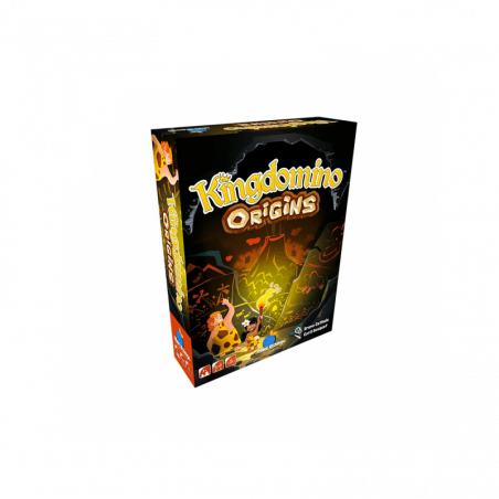 En Kingdomino Origins, intenta desarrollar tu tribu lo mejor posible llevando el fuego a tus distintos campamentos, especialmente con la ayuda de los terribles volcanes y sus proyecciones de lava. ¡Recoge los diferentes recursos naturales: mamuts, peces, pedernal, setas, etc… para formar a los miembros heroicos de tu tribu y gobernar los reinos de Kingdomino Origins!