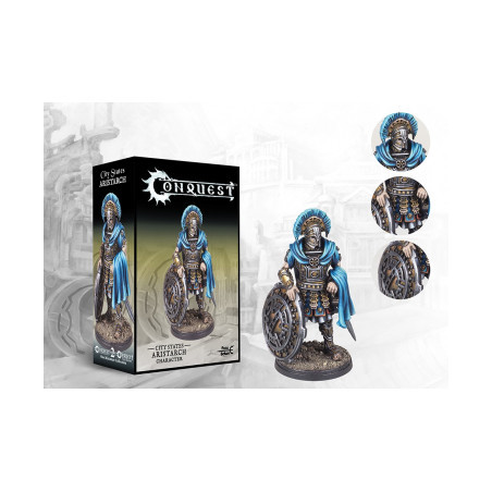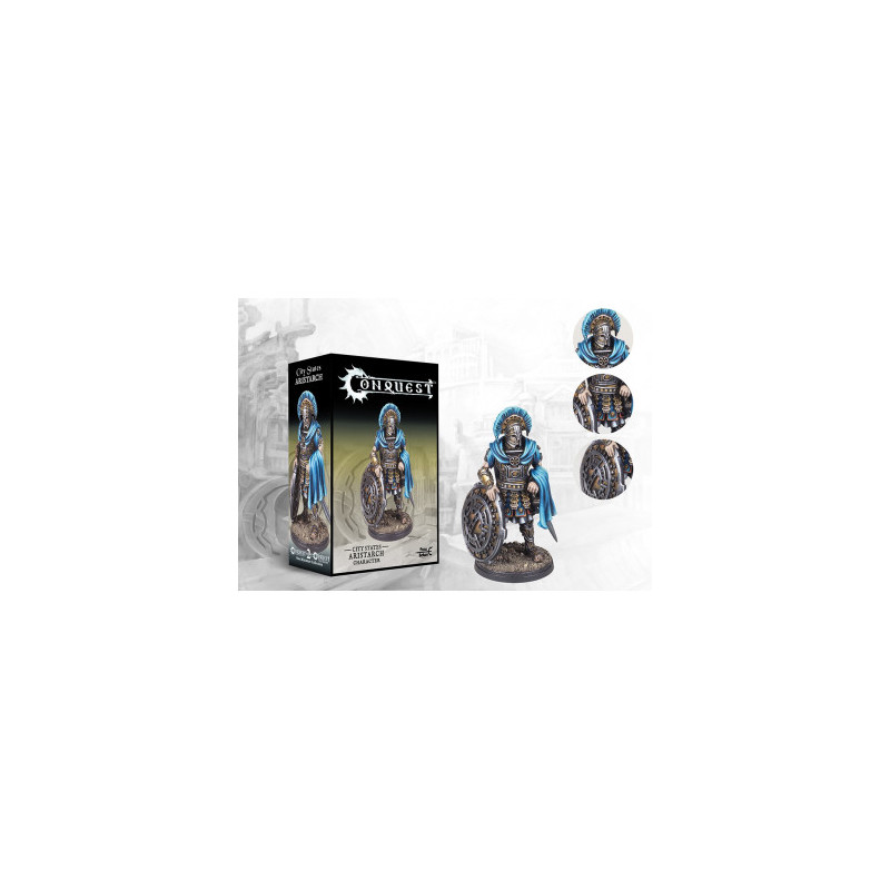 The box "City States - Aristarch" contains 1 resin figure on a 38mm scale and 1 command cards for Conquest. Figure supplied unassemble and unpainted.
