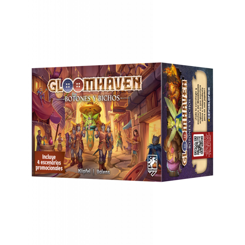¡Toda la estrategia y aventura del Gloomhaven original en una aventura única e independiente para un solo jugador! Gloomhaven: Botones y Bichos es un juego de combate táctico para 1 jugador. Adoptarás el papel de un mercenario en una serie de escenarios que narran una emocionante historia en forma de campaña. A pesar de que venga en un paquete tan diminuto, ¡esto es un gran juego!