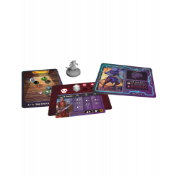 6 mercenarios diferentes, cada uno con una microminiatura, una carta de Personaje, 8 cartas de Capacidad de doble cara y mucho más, 22 cartas de Escenario con minimapas de batalla, 24 fichas de Estado, 10 cartas de Atributos de monstruo a doble cara con 20 enemigos distintos