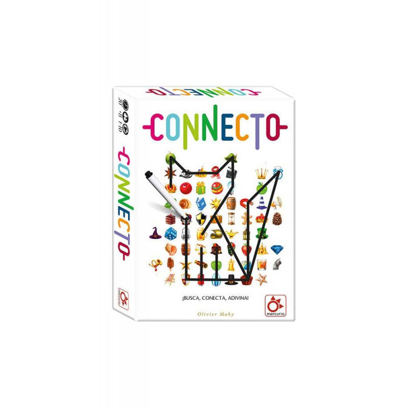¡Connecto contiene 184 retos! Resuelve las cartas de reto, conecta los objetos y adivina qué figura se forma en la carta. ¡Vuelve todo un juego de éxito en familia!