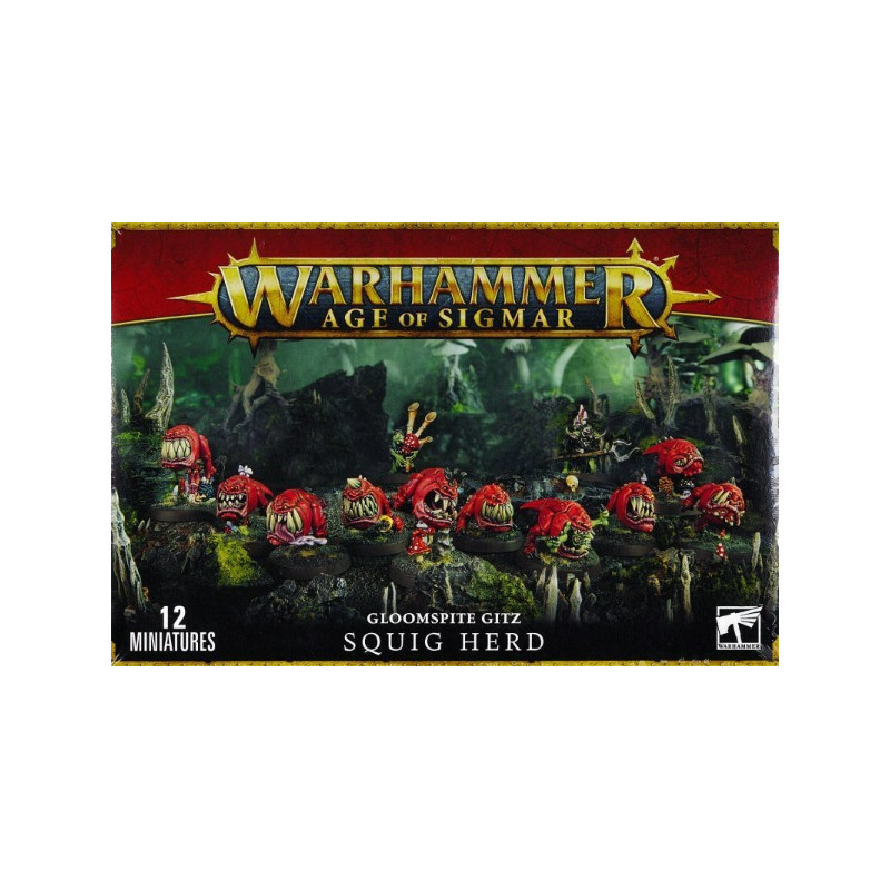 ¡Squigs! Poco más que bocas con patas y una actitud terrible, estos seres crueles son temidos por todos los Reinos Mortales por sus apetitos voraces, y a menudo los Gloomspite Gitz los usan al frente de sus filas.